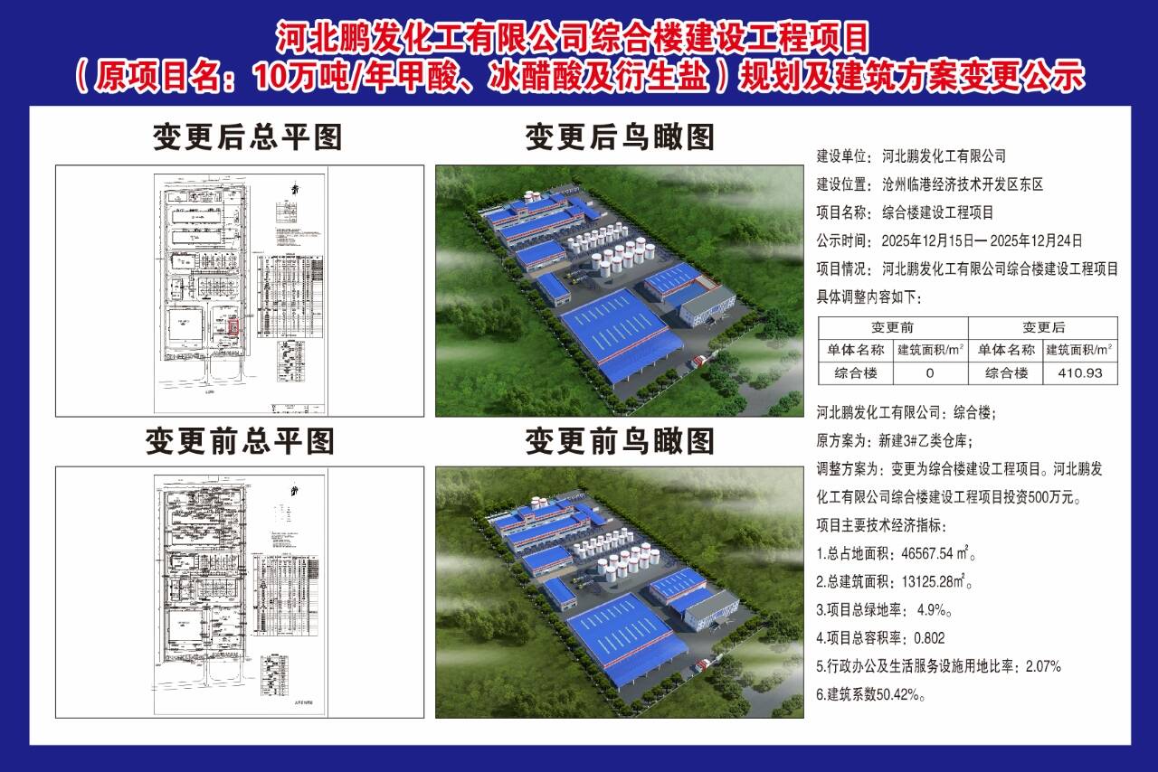 调整方案为:变更为综合楼建设工程项目。河北鹏发化工有限公司综合楼建设工程项目投资500万元。