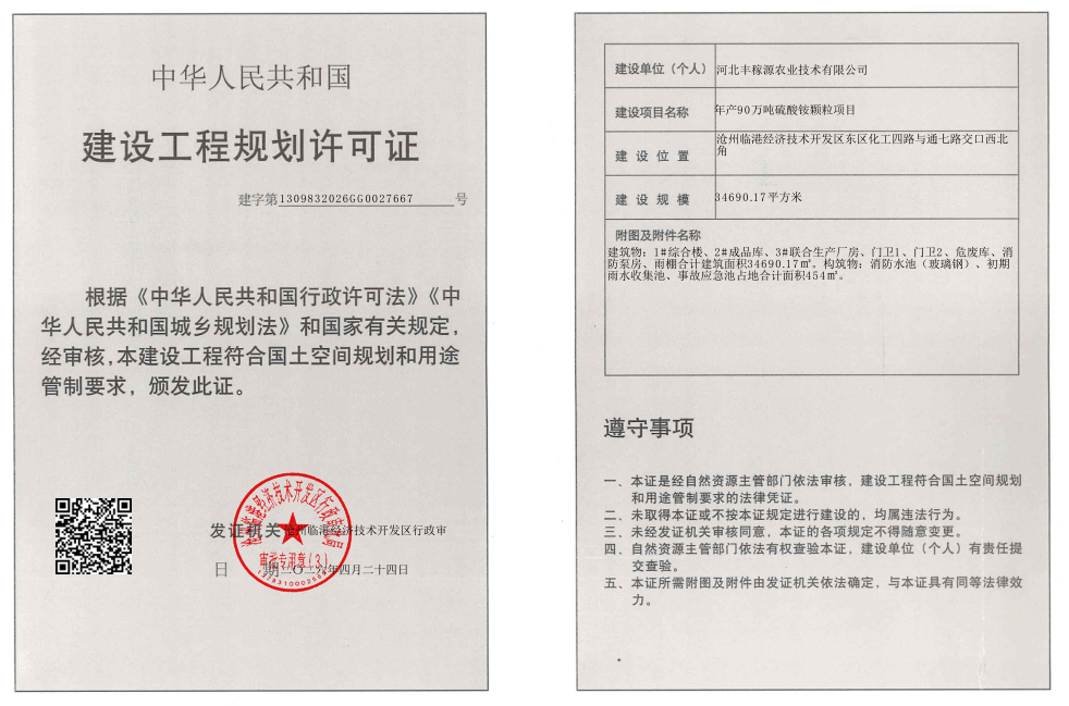 河北丰稼源农业技术有限公司年产90 万吨硫酸铵颗粒项目